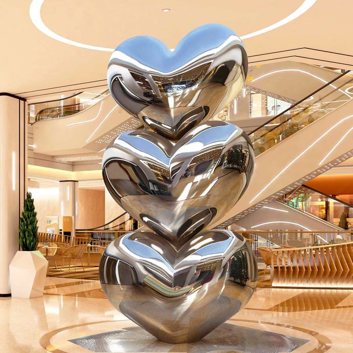 La sculpture en acier inoxydable au cœur empilé est une magnifique œuvre d'art conçue pour élever les décorations des hôtels.Cette sculpture présente des formes de cœur empilées symbolisant l'amour et l'élégance.Cette sculpture est parfaite pour ajouter une touche de sophistication et de charme aux espaces de l'hôtel.et autres espaces communs, ce qui en fait un point focal pour les invités et les visiteurs.