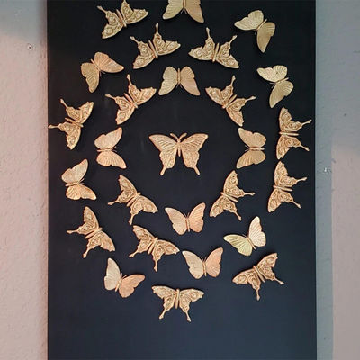 Élevez n'importe quel espace avec "La Muse Géométrique", une sculpture murale en métal captivante co-créée avec des artistes talentueux. Ce n'est pas juste une décoration ; c'est un sujet de conversation. Les formes géométriques imbriquées créent un jeu dynamique de lumière et d'ombre, ajoutant de la profondeur et de la sophistication à vos murs.